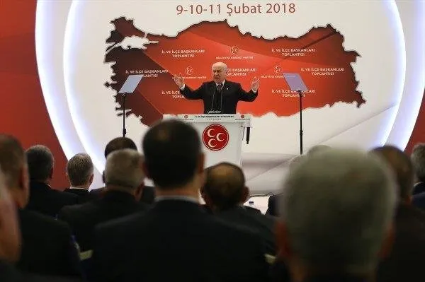 "Devlet gittikten, millet bölündükten sonra iktidarın ne anlamı kalacaktır? Cumhurbaşkanlığı Hükümet Sistemi'nin yeşerip billurlaşması bu kavrayış ve beka endişesi çemberinde vücut bulmuştur. Türk milleti 16 Nisan 2017'de Cumhurbaşkanlığı Hükümet Sistemi'ne evet demiştir. Milliyetçi Hareket Partisi, yeni hükümet etme sisteminin içinde başından sonuna kadar vardır ve paydaşıdır. Baraj sorunu yaşadığımızı söyleyenler, acaba barajın yüzde 50 artı 1'e çıktığını ne zaman idrak edecekler? Yüzde 10'u ağızlarında sakız gibi çiğneyenler, korktuğumuzdan, indiğimizden, gerilediğimizden dolayı ittifaktan medet umduğumuzu yüzsüzce diline dolayanlar, 15 Temmuz FETÖ ihanetinin yarım kalmasından içten içe üzülen kokuşmuşlardan başkası değildir.