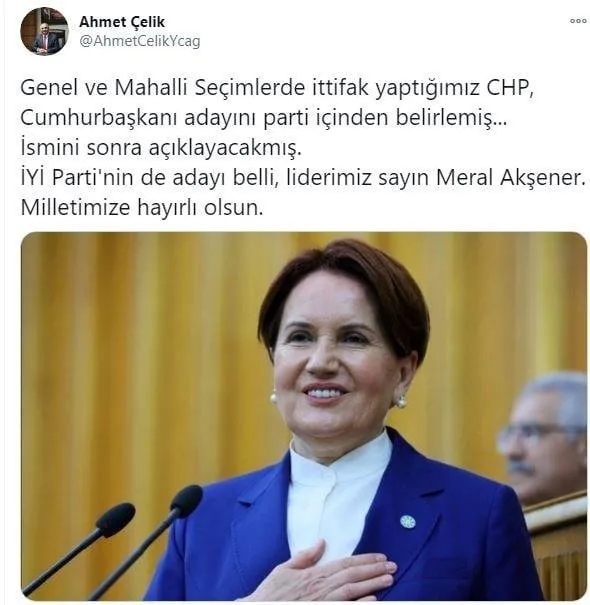Ahmet Çelik, Gürsel Tekin'in, "CHP'nin Cumhurbaşkanı adayı hazır.. Buna emin olun. Ama bu sadece bizim kendi partimiz içinde, partimizin mutfağında hepimizin kabul ettiği bir isim" açıklamasına cevap verdi.