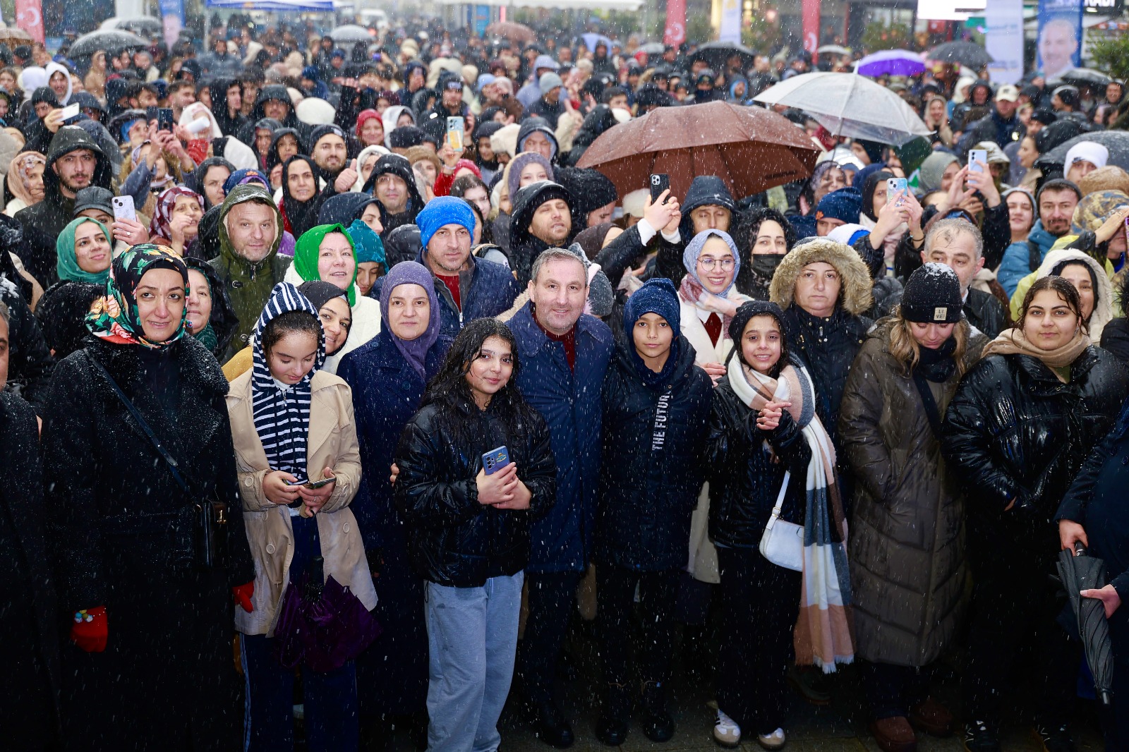 Bu organizasyonu düzenleyen Belediye Başkanımıza, kıymetli ekibine ve bu soğuk havaya rağmen gelerek içimizi ısıtan her bir vatandaşımıza tek tek teşekkür ediyorum. Ayrıca Sayın Cumhurbaşkanımız Recep Tayyip Erdoğan, dün buraya geleceğimizi öğrendiğinde tüm hemşehrilerimize selam ve sevgilerini iletti.” dedi.